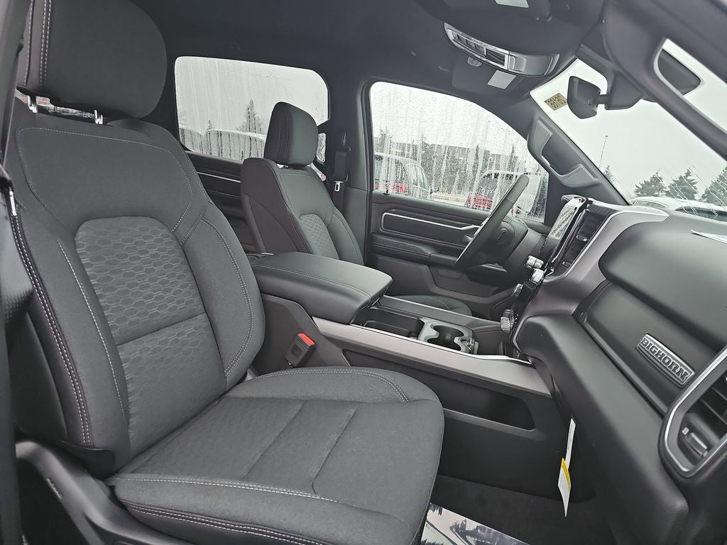 12 Touchscreen Display, 3 Rear Seat Head Restraints, 4 Way Front Headrests, Apple CarPlay/Android Auto, Bucket Seats, Center Console Parts Module, Deluxe Cloth Bucket Seats, Front Seat Back Map Pockets, Full Length Floor Console, Heated Front Seats, Heated Steering Wheel, Manual Adjust 4-Way Front Passenger Seat, Power 2-Way Driver Lumbar Adjust, Power Adjust 8-Way Driver Seat, Rear 60/40 Folding Seat, Rear Center Armrest, Trailer Brake Control, 115V Auxiliary Power Outlet, 115V Auxiliary Rear Power Outlet, 2nd Row in Floor Storage Bins, 4-Wheel Disc Brakes, 400W Inverter, 48V Belt Starter Generator, 4G LTE Wi-Fi Hot Spot, 6 Speakers, 9 Amplified Speakers with Subwoofer, ABS brakes, Accent Color Door Handles, Accent Color Premium Power Mirrors, Accent Color Tailgate Handle, Air Conditioning, Air Conditioning ATC with Dual Zone Control, Alloy wheels, AM/FM radio, Anti-Spin Differential Rear Axle, Apple CarPlay, Auto High-beam Headlights, Auto Power-Folding Mirrors, Auto-Dimming Exterior Driver Mirror, Auto-Dimming Rear-View Mirror, Big Horn Level 2 Equipment Group, Black Exterior Mirrors, Black Exterior Truck Badging, Black Headlamp Bezels, Black Interior Accents, Black Painted Exterior Mirrors Caps, Black Premium Power Mirrors, Black Tail Lamp Bezels, Body Color Fender Flares, Body Color Front Bumper, Body Color Rear Bumper with Step Pads, Brake assist, Bumpers: chrome, Cloth Bucket Seats, Cluster 7.0 TFT Color Display, Compass, Configurable Drive Mode, Connected Travel and Traffic Services, Connectivity - US/Canada, Convex Wide-Angle Exterior Mirror Insert, Delay-off headlights, Disassociated Touchscreen Display, Driver door bin, Dual Exhaust with Black Tips, Dual front impact airbags, Dual front side impact airbags, Electronic Stability Control, Exterior Mirrors Courtesy Lamps, Exterior Mirrors with Heating Element, Exterior Mirrors with Supplemental Signals, Front anti-roll bar, Front Bucket Seats, Front Center Armrest w/Storage, Front fog lights, Front reading lights, Front wheel independent suspension, Fully automatic headlights, Global Telematics Box Module, Glove Box Lamp, Google Android Auto, GPS Antenna Input, GPS Navigation, Grille Black Surround Black Mesh, HD Radio, Heated door mirrors, Illuminated entry, Integrated Center Stack Radio, Integrated Voice Command with Bluetooth®, Leather Wrapped Steering Wheel, LED Dome Lamp with on/Off Switch, LED Footwell Lighting, Low tire pressure warning, Manual Adjust 4-Way Driver Seat, Manual Folding Exterior Mirrors, Manufacturer's Statement of Origin, Media Hub with 2 Charge Only USBs, MOPAR Front and Rear Rubber Floor Mats, MyFlexCare Service Plan, Night Edition, Occupant sensing airbag, Outside temperature display, Overhead airbag, Overhead console, Overhead LED Lamps, Panic alarm, ParkView Rear Back-Up Camera, Passenger door bin, Passenger vanity mirror, Power Adjustable Pedals, Power door mirrors, Power steering, Power windows, Premium Overhead Console, Quick Order Package 21Z Big Horn, Radio data system, Radio: Uconnect 5 Navigation with 12.0 Display, Radio: Uconnect 5 W with 8.4 Display, RAM Grille Badge - Black, RAM Grille Badge - Chrome, Rear anti-roll bar, Rear Power Sliding Window, Rear step bumper, Rear Wheelhouse Liners, Rear Window Defroster, Remote keyless entry, Remote Tailgate Release, Security Alarm, SiriusXM Radio Service, SiriusXM with 360L, Speed control, Steering Wheel Mounted Audio Controls, Sun Visors with Illuminated Vanity Mirrors, Supplier Part Tracking (J-1), Tachometer, Telescoping steering wheel, Tilt steering wheel, Traction control, Trip computer, Universal Garage Door Opener, USB Host Flip, Variably intermittent wipers, Voltmeter, Wheels: 20 x 9.0 Aluminum Painted Clad, 12 Touchscreen Display, 3 Rear Seat Head Restraints, 4 Way Front Headrests, Apple CarPlay/Android Au Price includes: $3500 - 2026 National Retail Consumer Cash . Exp. 03/02/2