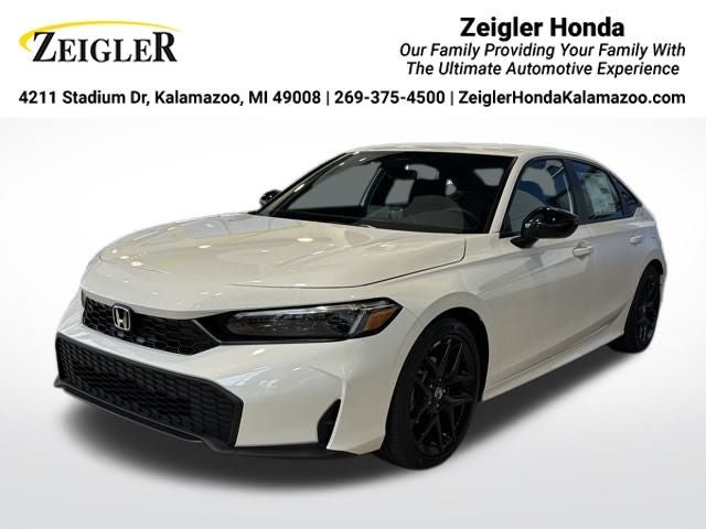2026 Civic Honda Sport Platinum White Pearl Black w/Cloth/Leatherette Seating Surfaces, Adaptive Cruise Control: Adaptive Cruise Control (ACC) with Low-Speed Follow, Apple CarPlay/Android Auto, Blind Spot Information (BSI) System warning, Emergency communication system: HondaLink, Heated door mirrors, Illuminated entry, Power door mirrors, Remote keyless entry, Steering wheel mounted audio controls, Traction control.