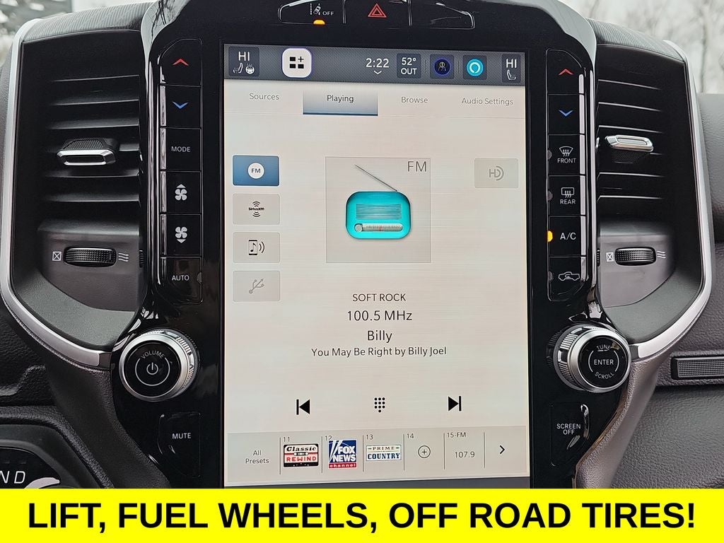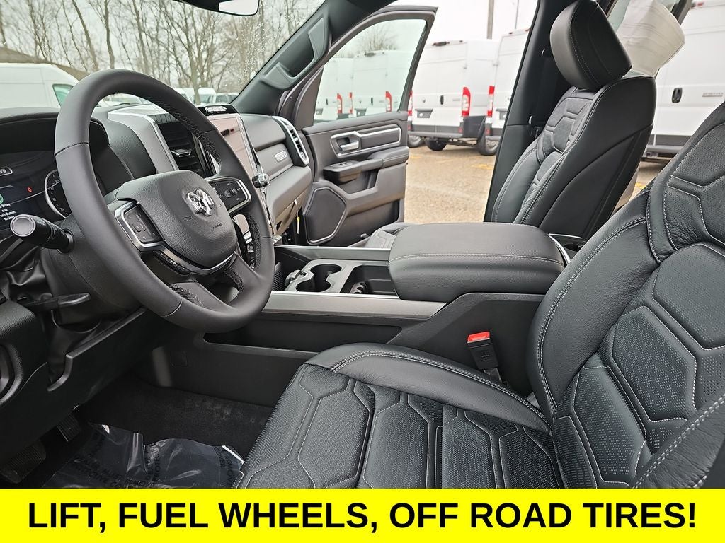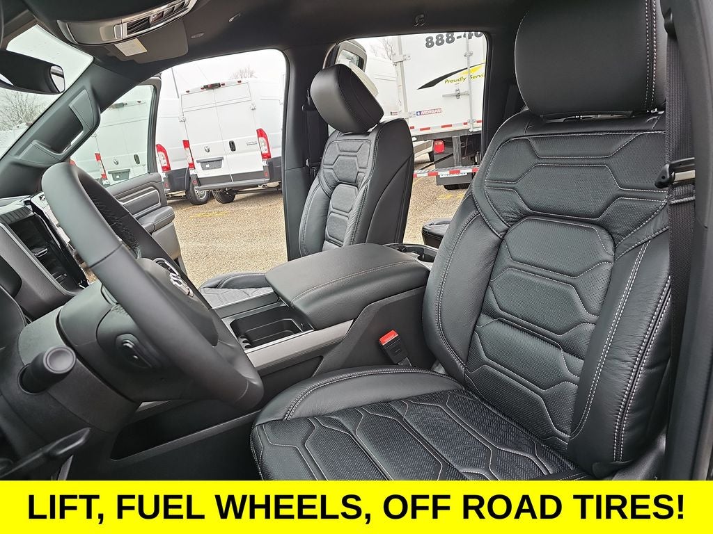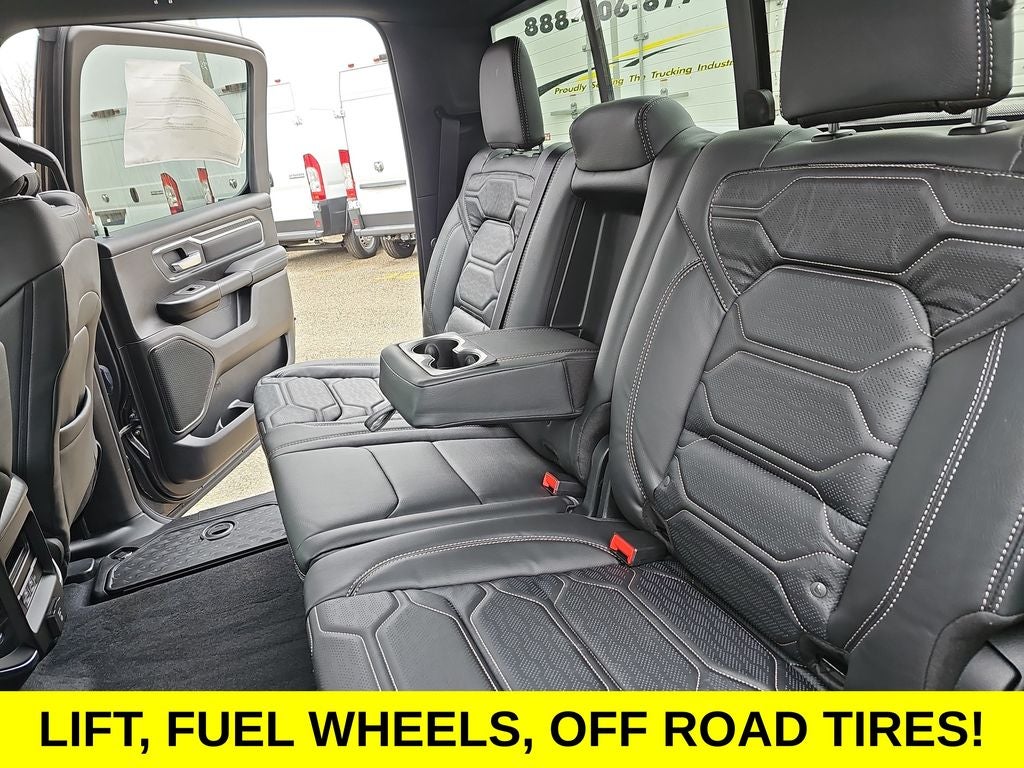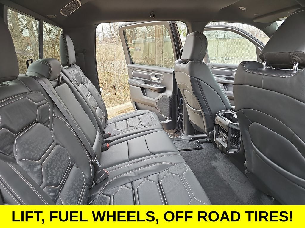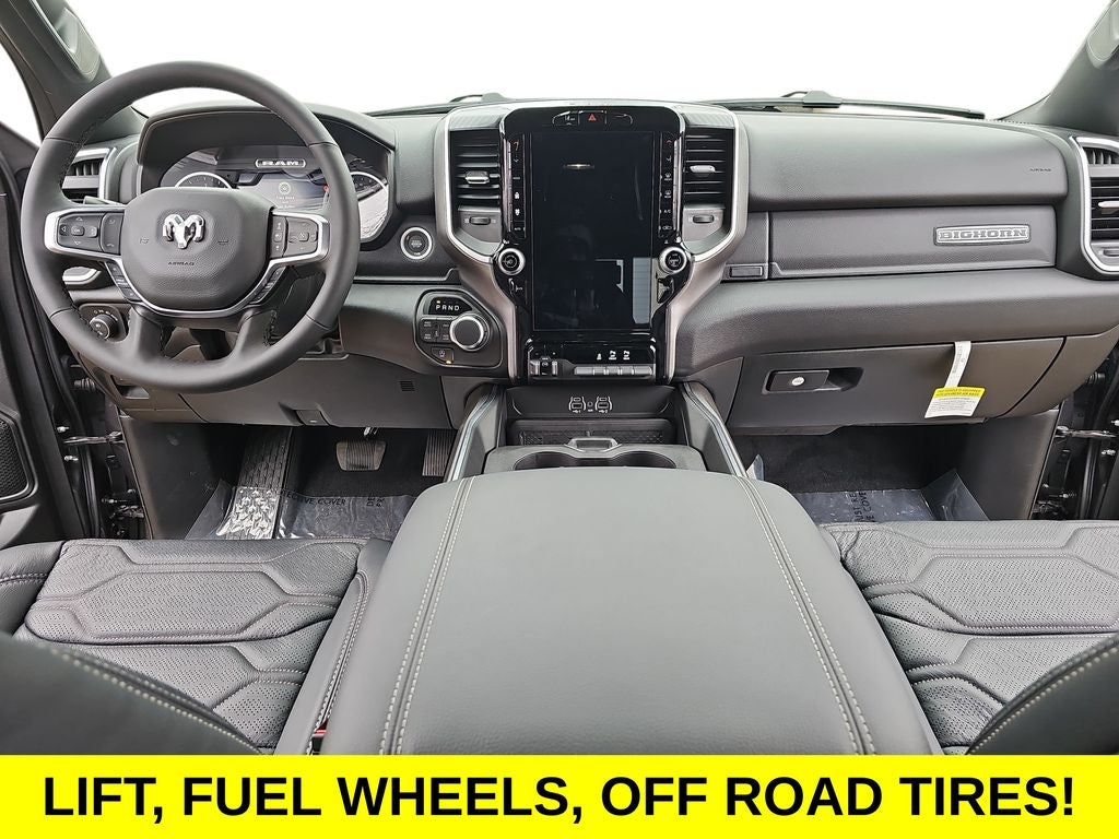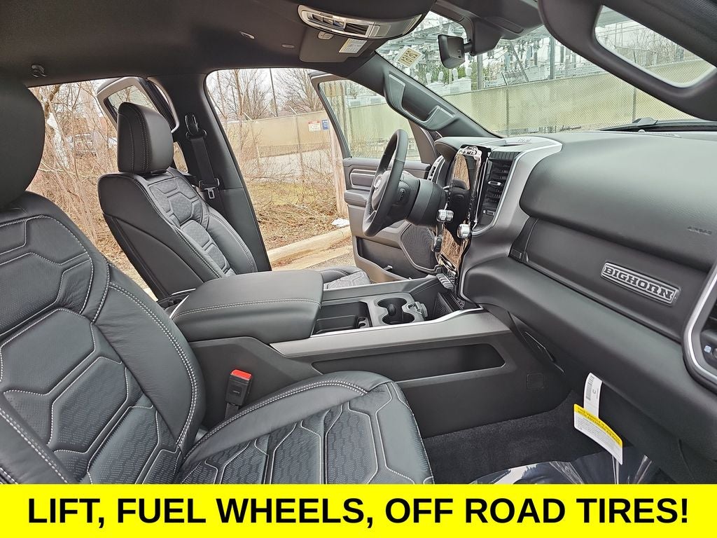 12 Touchscreen Display, Apple CarPlay/Android Auto, Heated Front Seats, Heated Steering Wheel, 115V Auxiliary Power Outlet, 115V Auxiliary Rear Power Outlet, 2nd Row in Floor Storage Bins, 3 Rear Seat Head Restraints, 4 Way Front Headrests, 4-Wheel Disc Brakes, 400W Inverter, 48V Belt Starter Generator, 4G LTE Wi-Fi Hot Spot, 6 Speakers, 9 Amplified Speakers with Subwoofer, ABS brakes, Accent Color Door Handles, Accent Color Premium Power Mirrors, Accent Color Tailgate Handle, Air Conditioning, Air Conditioning ATC with Dual Zone Control, Alloy wheels, AM/FM radio, Anti-Spin Differential Rear Axle, Apple CarPlay, Auto High-beam Headlights, Auto Power-Folding Mirrors, Auto-Dimming Exterior Driver Mirror, Auto-Dimming Rear-View Mirror, Big Horn Level 2 Equipment Group, Black Exterior Mirrors, Black Exterior Truck Badging, Black Headlamp Bezels, Black Interior Accents, Black Painted Exterior Mirrors Caps, Black Premium Power Mirrors, Black Tail Lamp Bezels, Body Color Fender Flares, Body Color Front Bumper, Body Color Rear Bumper with Step Pads, Brake assist, Bucket Seats, Bumpers: chrome, Center Console Parts Module, Cloth Bucket Seats, Cluster 7.0 TFT Color Display, Compass, Configurable Drive Mode, Connected Travel and Traffic Services, Connectivity - US/Canada, Convex Wide-Angle Exterior Mirror Insert, Delay-off headlights, Deluxe Cloth Bucket Seats, Disassociated Touchscreen Display, Driver door bin, Dual Exhaust with Black Tips, Dual front impact airbags, Dual front side impact airbags, Electronic Stability Control, Exterior Mirrors Courtesy Lamps, Exterior Mirrors with Heating Element, Exterior Mirrors with Supplemental Signals, Front anti-roll bar, Front Bucket Seats, Front Center Armrest w/Storage, Front fog lights, Front License Plate Bracket, Front reading lights, Front Seat Back Map Pockets, Front wheel independent suspension, Full Length Floor Console, Fully automatic headlights, Global Telematics Box Module, Glove Box Lamp, Google Android Auto, GPS Antenna Input, GPS Navigation, Grille Black Surround Black Mesh, HD Radio, Heated door mirrors, Illuminated entry, Integrated Center Stack Radio, Integrated Voice Command with Bluetooth®, Leather Wrapped Steering Wheel, LED Dome Lamp with on/Off Switch, LED Footwell Lighting, Low tire pressure warning, Manual Adjust 4-Way Driver Seat, Manual Adjust 4-Way Front Passenger Seat, Manual Folding Exterior Mirrors, Manufacturer's Statement of Origin, Media Hub with 2 Charge Only USBs, Mopar Black Tubular Side Steps, Night Edition, Occupant sensing airbag, Outside temperature display, Overhead airbag, Overhead console, Overhead LED Lamps, Panic alarm, ParkView Rear Back-Up Camera, Passenger door bin, Passenger vanity mirror, Power 2-Way Driver Lumbar Adjust, Power Adjust 8-Way Driver Seat, Power Adjustable Pedals, Power door mirrors, Power steering, Power windows, Premium Overhead Console, Quick Order Package 21Z Big Horn, Radio data system, Radio: Uconnect 5 Navigation with 12.0 Display, Radio: Uconnect 5 W with 8.4 Display, RAM Grille Badge - Black, RAM Grille Badge - Chrome, Rear 60/40 Folding Seat, Rear anti-roll bar, Rear Center Armrest, Rear Power Sliding Window, Rear step bumper, Rear Wheelhouse Liners, Rear Window Defroster, Remote keyless entry, Remote Tailgate Release, Security Alarm, SiriusXM Radio Service, SiriusXM with 360L, Speed control, Steering Wheel Mounted Audio Controls, Sun Visors with Illuminated Vanity Mirrors, Supplier Part Tracking (J-1), Tachometer, Telescoping steering wheel, Tilt steering wheel, Traction control, Trailer Brake Control, Trip computer, Universal Garage Door Opener, USB Host Flip, Variably intermittent wipers, Voltmeter, Wheels: 20 x 9.0 Aluminum Painted Clad, 12 Touchscreen Display, Apple CarPlay/Android Auto, Heated Front Seats, Heated Steering Wheel. Price includes dealer added accessories.