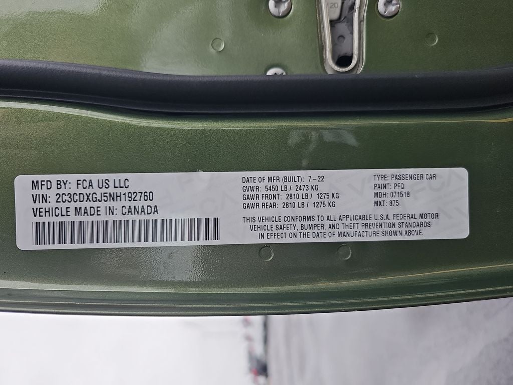 Recent Arrival! 2022 Dodge Charger R/T Scat Pack F8 Green 4-Wheel Disc Brakes, 6 Speakers, ABS brakes, Air Conditioning, Alloy wheels, AM/FM radio: SiriusXM, Anti-whiplash front head restraints, Apple CarPlay, Apple CarPlay/Android Auto, Auto-dimming Rear-View mirror, Automatic temperature control, Body Color Exterior Mirrors, Brake assist, Bumpers: body-color, Cloth Performance Seats w/Heat, Compass, Delay-off headlights, Driver door bin, Driver vanity mirror, Dual front impact airbags, Dual front side impact airbags, Electronic Stability Control, Emergency communication system: SiriusXM Guardian, Four wheel independent suspension, Front anti-roll bar, Front Bucket Seats, Front Center Armrest, Front dual zone A/C, Front fog lights, Front reading lights, Fully automatic headlights, Garage door transmitter: HomeLink, Google Android Auto, GPS Antenna Input, Heated door mirrors, Heated Front Seats, Heated front seats, Heated steering wheel, Illuminated entry, Integrated Center Stack Radio, Integrated Voice Command w/Bluetooth®, Knee airbag, Leather Shift Knob, Low tire pressure warning, Media Hub (2 USB, AUX), Occupant sensing airbag, Outside temperature display, Overhead airbag, Overhead console, Panic alarm, ParkView Rear Back-Up Camera, Passenger door bin, Passenger vanity mirror, Power 2-Way Driver Lumbar Adjust, Power door mirrors, Power driver seat, Power steering, Power windows, Quick Order Package 21W Scat Pack, Radio: Uconnect 4C w/8.4 Display, Rear anti-roll bar, Rear reading lights, Rear seat center armrest, Rear window defroster, Remote keyless entry, Satin Black Painted Hood, Security system, Speed control, Speed-Sensitive Wipers, Split folding rear seat, Spoiler, Sport steering wheel, Steering wheel mounted audio controls, Tachometer, Telescoping steering wheel, Tilt steering wheel, Traction control, Trip computer, USB Host Flip, Variably intermittent wipers, Wheels: 20 x 9 Lo Gloss Granite Crystal.