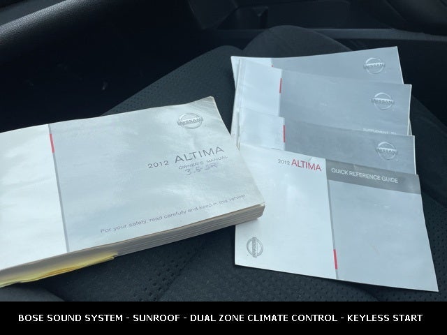 **LOW MILES FOR THE YEAR**LOCAL TRADE**BOSE SOUND SYSTEM**MOONROOF*GREAT GAS MILEAGE**30MPG**DUAL ZONE CLIMATE CONTROL**KEYLESS START**SPORT TUNED SUSPENSION**CRUISE CONTROL**REAR SPOILER**Dark Slate Metallic 2012 Nissan Altima 3.5 SR LOCAL TRADE FWD CVT with Xtronic 3.5L V6 DOHC 24V *MOONROOF, *LOCAL TRADE, *FULLY SERVICED, Bluetooth® Hands-Free Phone System, Dual Zone Automatic Temperature Control, Premium Package, Premium Package (P02), Radio: Bose AM/FM Audio System, Rearview Monitor.
