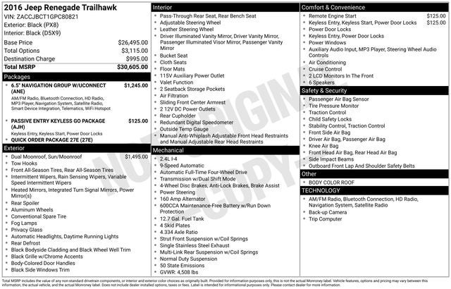 The Renegade Trailhawk's impressive list of features doesn't stop there. Enjoy the convenience of keyless entry and push-button start, as well as the added security of a remote start system. The 6.5 Uconnect touchscreen display provides seamless integration of your smartphone, with features like GPS navigation, HD radio, and SiriusXM traffic and travel link services.