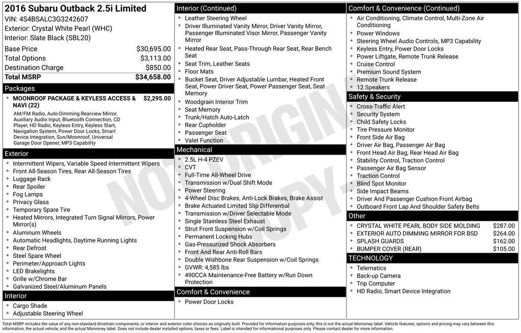 - Vehicle Name: Subaru Outback