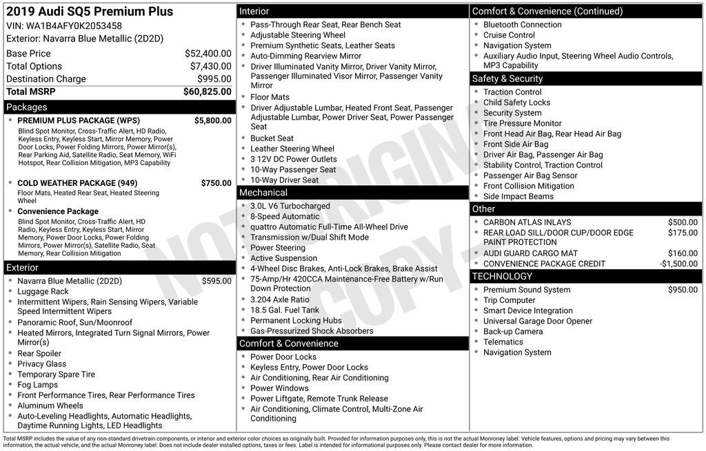 Indulge in the unparalleled driving dynamics and premium amenities of this 2019 Audi SQ5 3.0T Premium Plus quattro. Schedule a test drive today and experience the power, style, and sophistication that only an Audi can deliver.