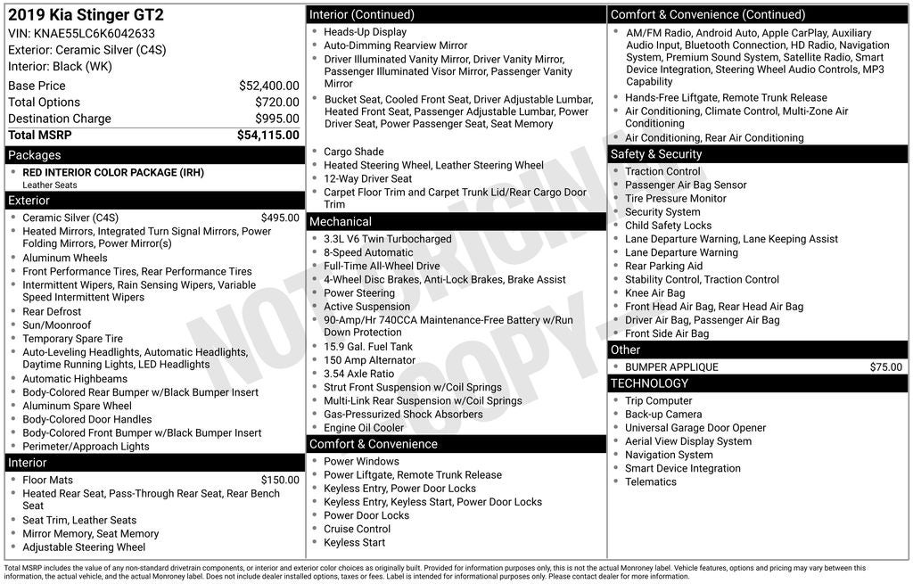 This Stinger GT2 is equipped with a host of advanced safety and convenience technologies, including Dual Zone Climate Control, Heads-Up Display, Memory Seats, and a premium harman/kardon® audio system. The striking red leather interior and sleek exterior design make this Stinger a true head-turner.