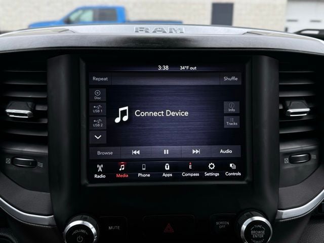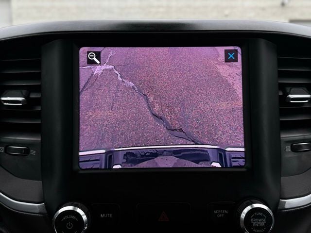 The interior of this Ram 1500 is just as impressive, with comfortable and supportive cloth bucket seats, a power-adjustable driver's seat, and a full-length center console for optimal storage and organization. The remote start system allows you to warm up the cabin on those chilly mornings, while the universal garage door opener adds an extra layer of convenience.