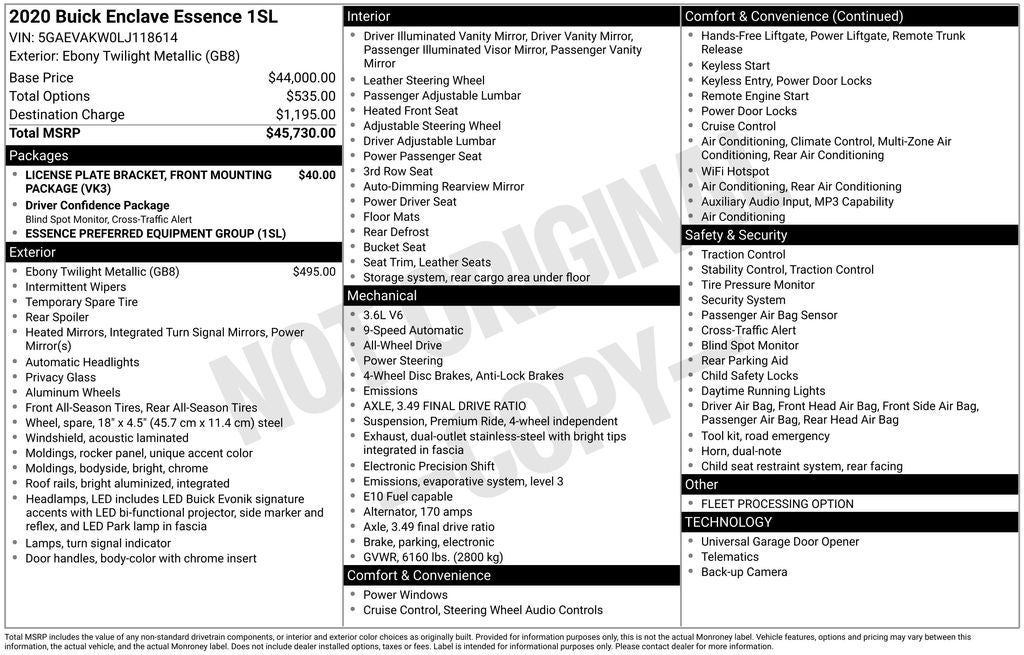 The 2020 Buick Enclave Essence is a premium SUV that combines sophisticated style, advanced technology, and exceptional versatility. With its sleek, sculpted exterior and well-appointed interior, this Enclave is the perfect blend of form and function.
