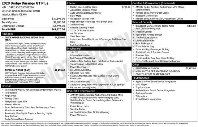 Boasting a striking gray exterior and a host of premium features, the Durango GT Plus is a true standout. Key highlights include: