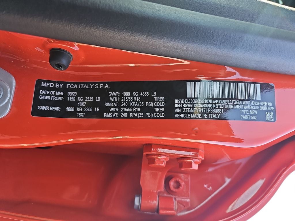 2020 Fiat 500X Trekking Arancio (Orange) 3.734 Axle Ratio, 4-Wheel Disc Brakes, 6 Speakers, 7.0 Touch Screen Display, ABS brakes, Air Conditioning, Alloy wheels, AM/FM radio: SiriusXM, Anti-whiplash front head restraints, Apple CarPlay, Brake assist, Bumpers: body-color, Cloth Low-Back Bucket Seats, Compass, Delay-off headlights, Driver door bin, Driver vanity mirror, Dual front impact airbags, Dual front side impact airbags, Electronic Stability Control, Four wheel independent suspension, Front anti-roll bar, Front Bucket Seats, Front Center Armrest, Front fog lights, Front reading lights, Fully automatic headlights, Google Android Auto, GPS Antenna Input, Heated door mirrors, Illuminated entry, Integrated Voice Command w/Bluetooth®, Knee airbag, Leather Shift Knob, Leather steering wheel, Low tire pressure warning, Occupant sensing airbag, Outside temperature display, Overhead airbag, Overhead console, Panic alarm, ParkView Rear Back-Up Camera, Passenger door bin, Passenger vanity mirror, Power door mirrors, Power steering, Power windows, Premium audio system: Uconnect 4, Radio data system, Radio: Uconnect 4 w/7 Display, Rear anti-roll bar, Rear window defroster, Rear window wiper, Remote keyless entry, Security system, Speed control, Speed-sensing steering, Split folding rear seat, Spoiler, Steering wheel mounted audio controls, Tachometer, Telescoping steering wheel, Tilt steering wheel, Traction control, Trip computer, Turn signal indicator mirrors, USB Host Flip, Variably intermittent wipers, Wheels: 17 x 7.0 Silver Aluminum.