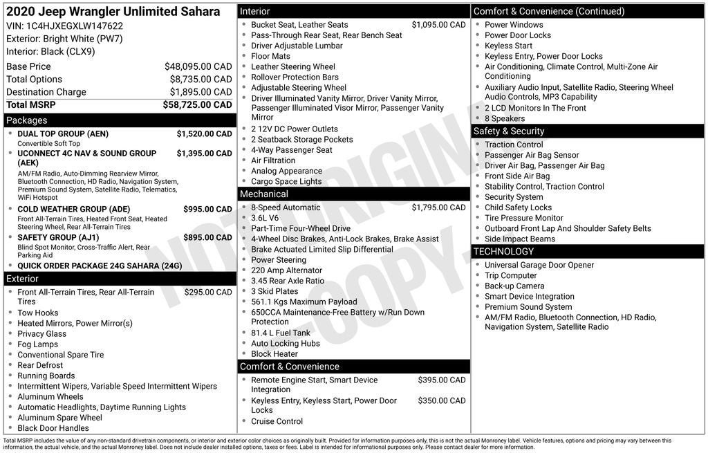 Discover the ultimate adventure-ready SUV with this stunning 2020 Jeep Wrangler Unlimited Sahara. Boasting a rugged 3.6L V6 engine, 8-speed automatic transmission, and legendary 4WD capabilities, this Wrangler is primed to tackle any terrain with confidence and style.