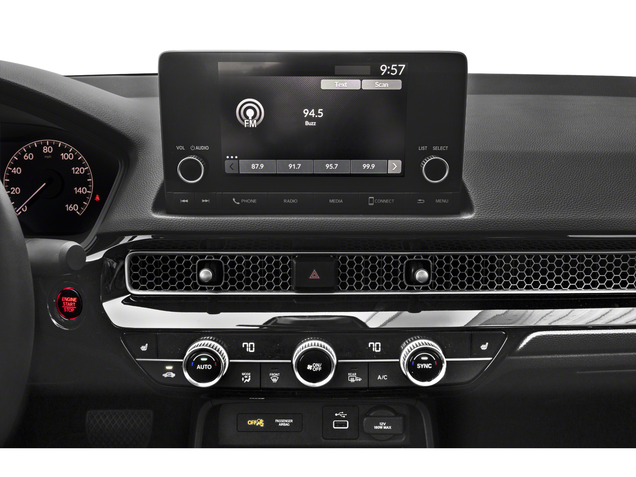 - Radio: 180-Watt AM/FM Audio System -inc: 8 speakers, 7" color touch screen, Bluetooth® HandsFreeLink, Bluetooth® streaming audio, Radio Data System (RDS), speed-sensitive volume compensation (SVC), SMS text message function, HondaLink, Apple CarPlay integration, Android Auto integration and 2.5-amp USB smartphone/audio interface port in front console