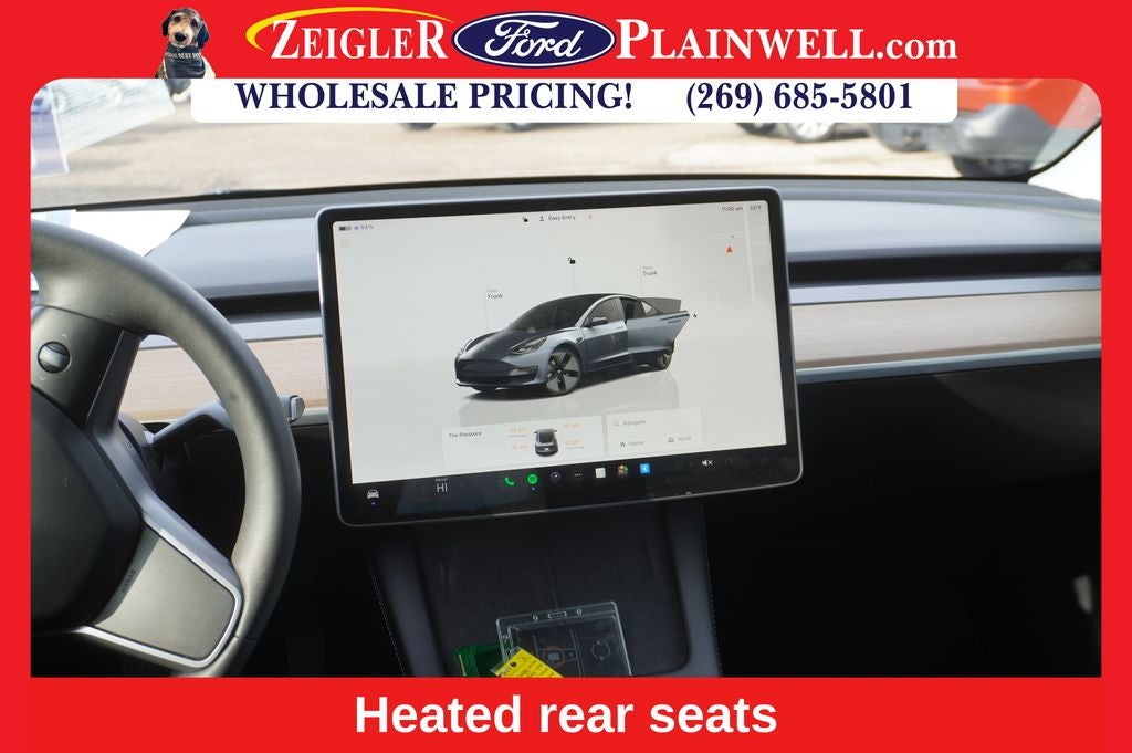 The interior of this Model 3 is equally impressive, featuring a premium audio system, heated front and rear seats, and a stunning wood dashboard insert that adds a touch of elegance. The navigation system and advanced driver assistance features, such as the Lane Departure Warning System and Exterior Parking Camera Rear, provide a level of convenience and safety that will elevate your driving experience.