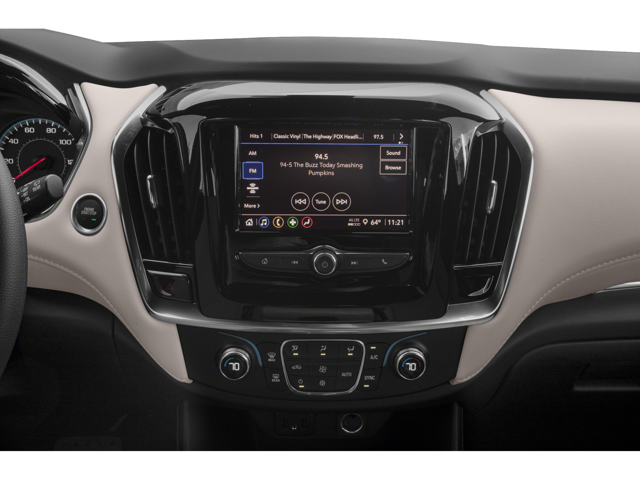 - Audio system, Chevrolet Infotainment 3 system 7" diagonal color touchscreen, AM/FM stereo. Additional features for compatible phones include: Bluetooth® audio streaming for 2 active devices, voice command pass-through to phone, Apple CarPlay and Android Auto capable