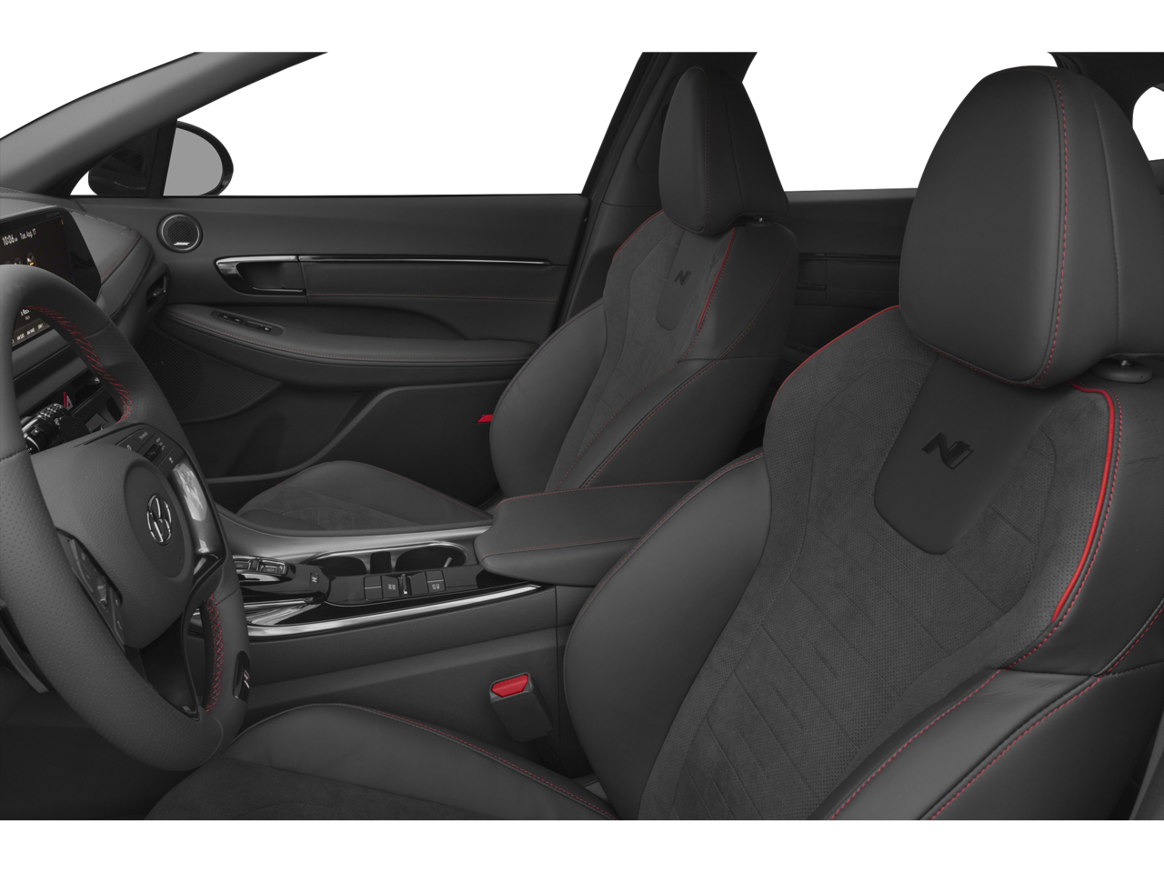 Step inside the cabin and you'll be enveloped in a world of premium comfort and convenience. The Sonata N Line boasts a stunning Leather-wrapped interior, complete with heated N Unique Sport Seats, ensuring you and your passengers travel in absolute luxury. The panoramic moonroof floods the interior with natural light, creating an open and airy ambiance.