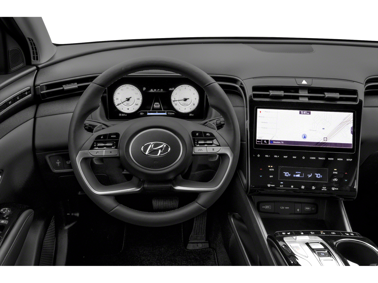 Step inside and experience the unparalleled comfort and convenience of the Tucson Limited. The spacious cabin is adorned with premium leather seating, heated and ventilated front seats, and a panoramic sunroof that floods the interior with natural light. The advanced Bose premium audio system and seamless integration of Apple CarPlay and Android Auto ensure you stay connected and entertained on the go.