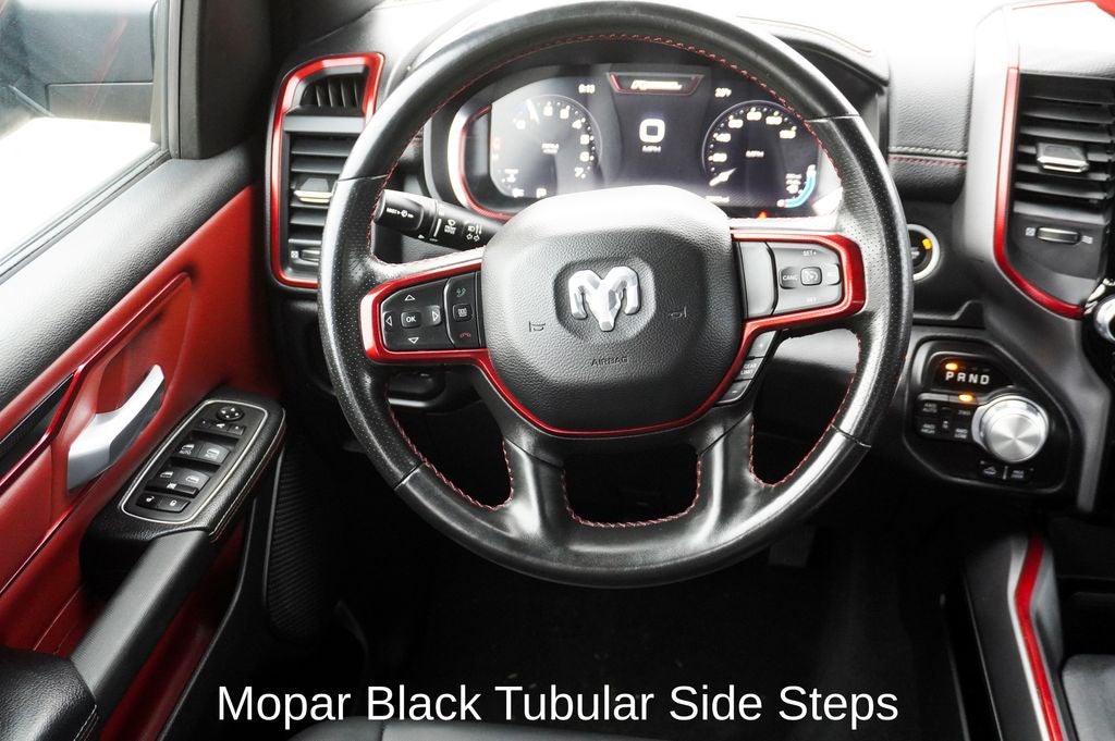 Beyond the technology, the Rebel's rugged styling and off-road capabilities make it a true adventure-ready companion. The Bed Utility Group and Class IV Receiver Hitch ensure you can haul your gear with ease, while the Mopar Black Tubular Side Steps provide easy access to the cabin.