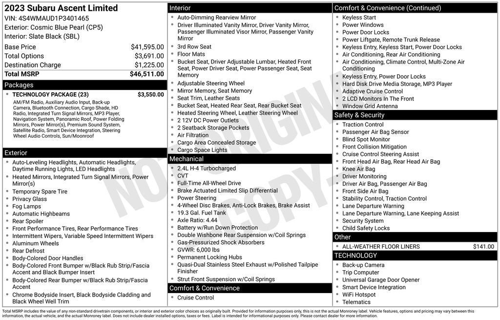 - Vehicle Name: Subaru Ascent