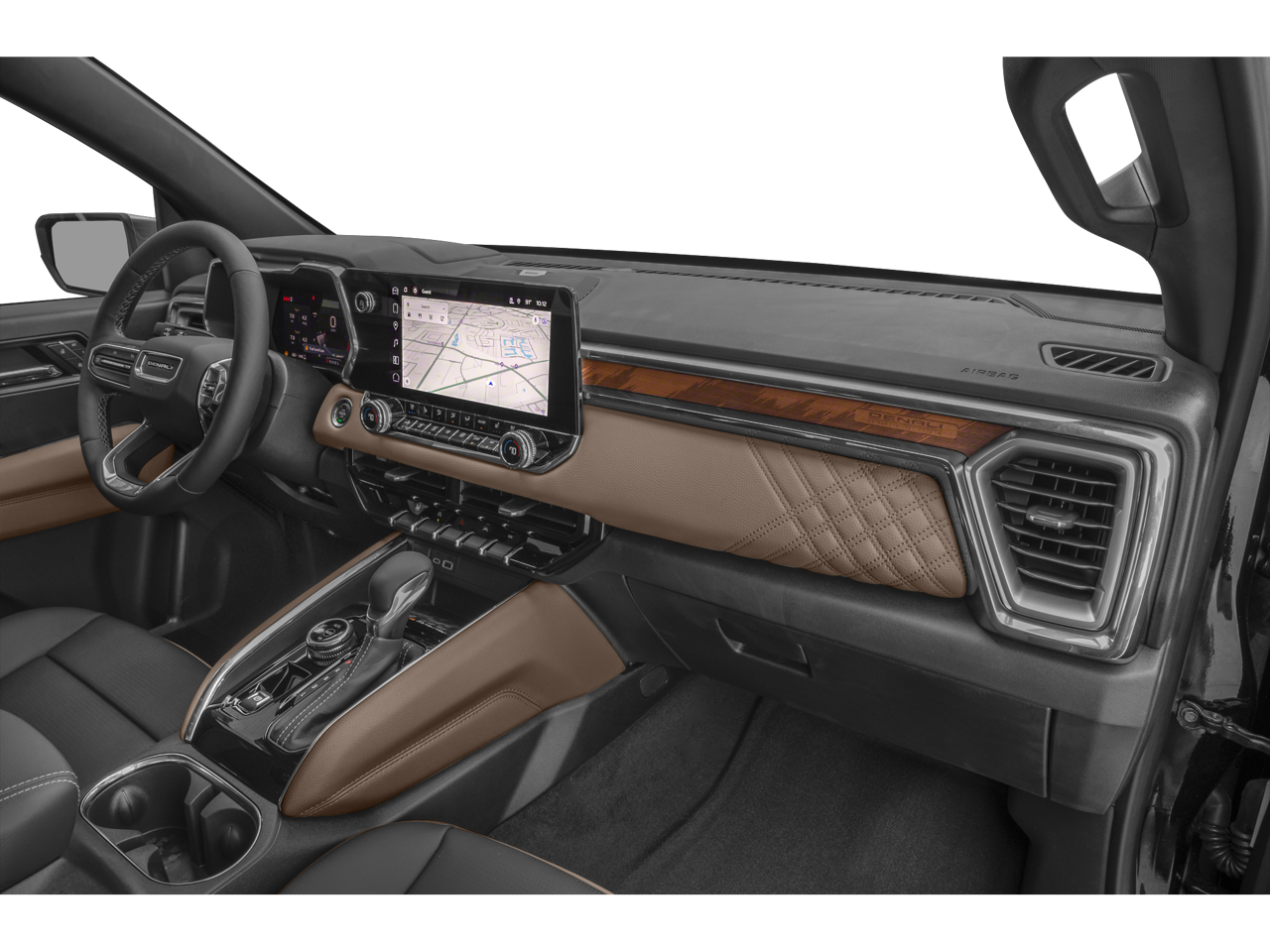 Safety is a top priority, and this Canyon Denali delivers with advanced features like Automatic Emergency Braking, Blind Zone Steering Assist, and the Rear Cross Traffic Braking system. The Heads-Up Display and Safety Alert Seat provide added peace of mind, ensuring you stay aware of your surroundings.