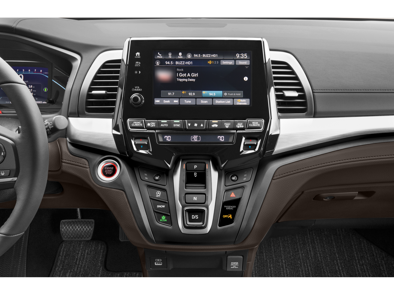 - Radio: 160-Watt AM/FM/HD/SiriusXM Audio System -inc: 7 speakers including subwoofer, 8" color touchscreen display, Bluetooth HandsFreeLink, Bluetooth streaming audio, MP3/auxiliary input jack, Radio Data System (RDS), Speed-Sensitive Volume Compensation (SVC), CabinControl remote compatibility, HondaLink, Apple CarPlay compatibility, Android Auto compatibility, SMS text message function, 3 2.5-amp USB charging ports, 2.5-amp USB smartphone/audio interface, illuminated steering wheel-mounted audio controls and black fin-type roof-mounted antenna, All SiriusXM services require a subscription, sold separately by SiriusXM after the trial period, If you decide to continue service, the plan you choose will automatically renew at the then-current rates, Fees and taxes apply, See the SiriusXM Customer Agreement & Privacy Policy at www.siriusxm.com for full terms and how to cancel, which includes calling 1-866-635-2349, Available in the 48 contiguous U.S, and D.C, Some services and features are subject to device capabilities and location restrictions, All fees, content and features are subject to change, SiriusXM, Pandora and all related logos are trademarks of Sirius XM Radio Inc, and its respective subsidiaries