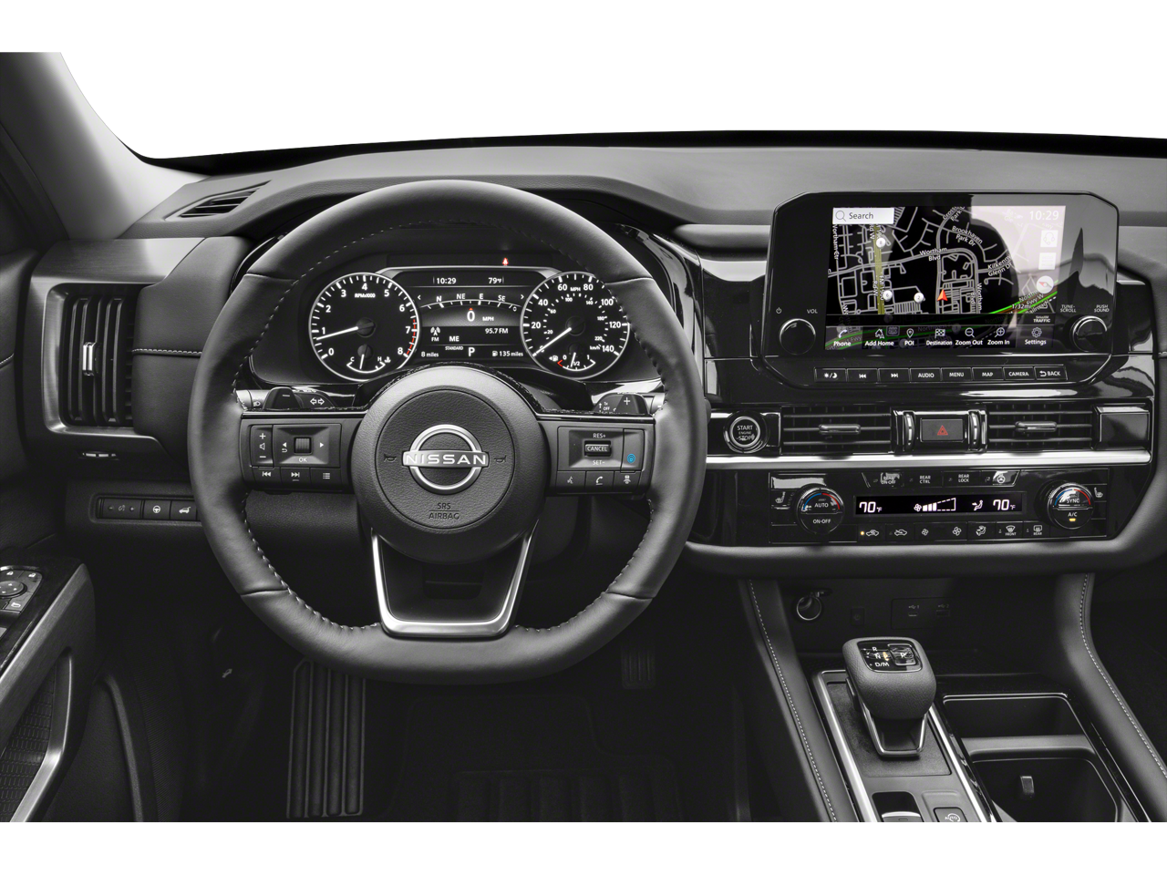 Elevate your driving experience with the Pathfinder's advanced features, including the NissanConnect with Navigation and Services, providing you with cutting-edge connectivity and navigation. The spacious interior offers ample room for up to 8 passengers, with heated front seats and a power liftgate for effortless loading and unloading.