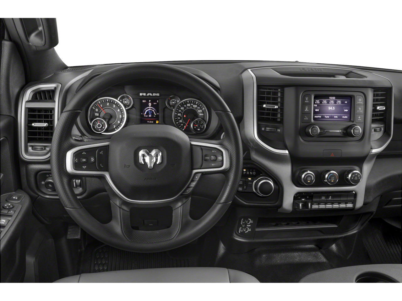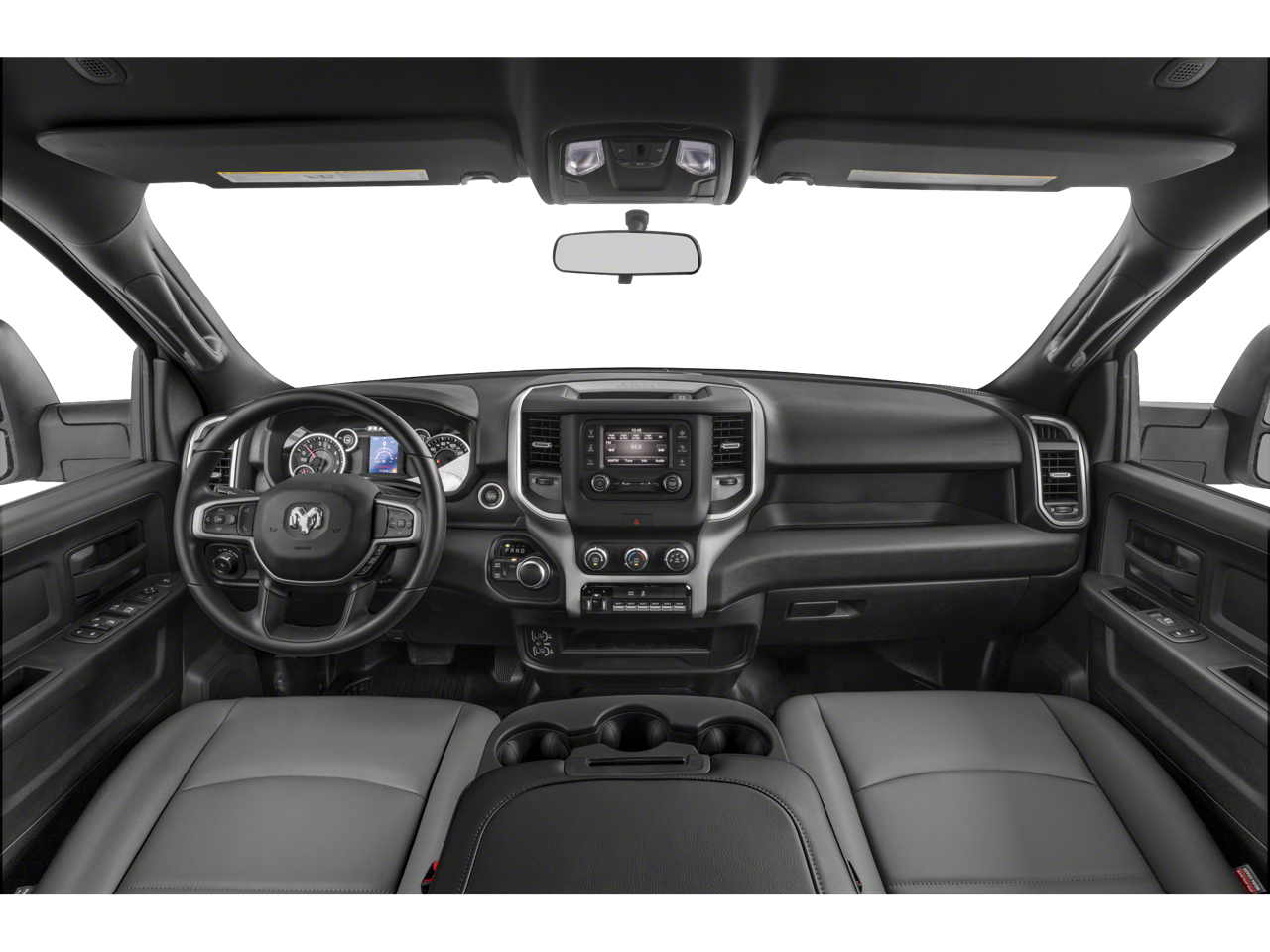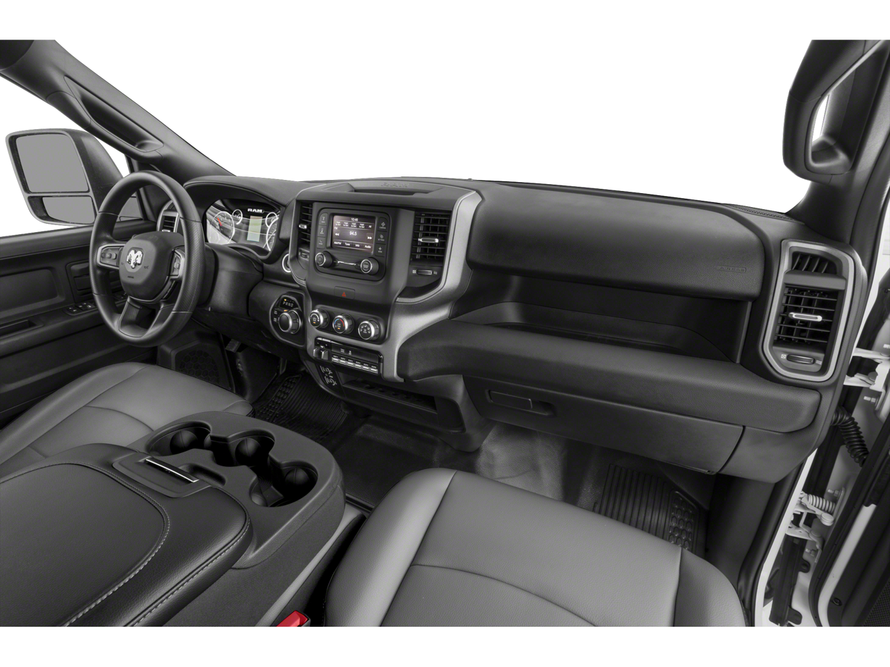 The interior of this Ram 3500 Tradesman is designed with your comfort and convenience in mind. The spacious cabin features a 40/20/40 split bench seat with cloth upholstery, providing ample room for both passengers and cargo. The Uconnect 5 infotainment system with an 8.4 touchscreen display keeps you connected and entertained, while the Convenience Group ensures a comfortable ride in any weather.