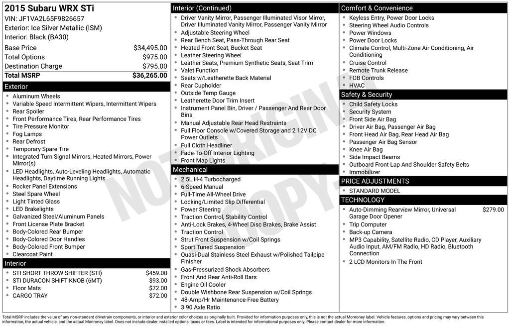 - Vehicle Name: Subaru WRX STI