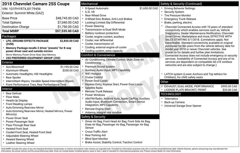 Designed to thrill, the Camaro SS 2SS boasts a host of advanced features that cater to the discerning driver. Experience the power of the Bose Premium 9-Speaker Audio System, the convenience of Remote Keyless Entry and Remote Vehicle Starter System, and the added functionality of Apple CarPlay and Android Auto integration. Indulge in the luxury of heated and ventilated leather-trimmed seats, and let the power sunroof flood the cabin with natural light.